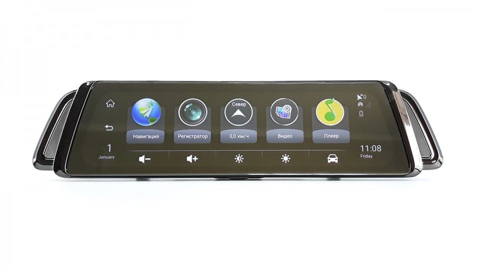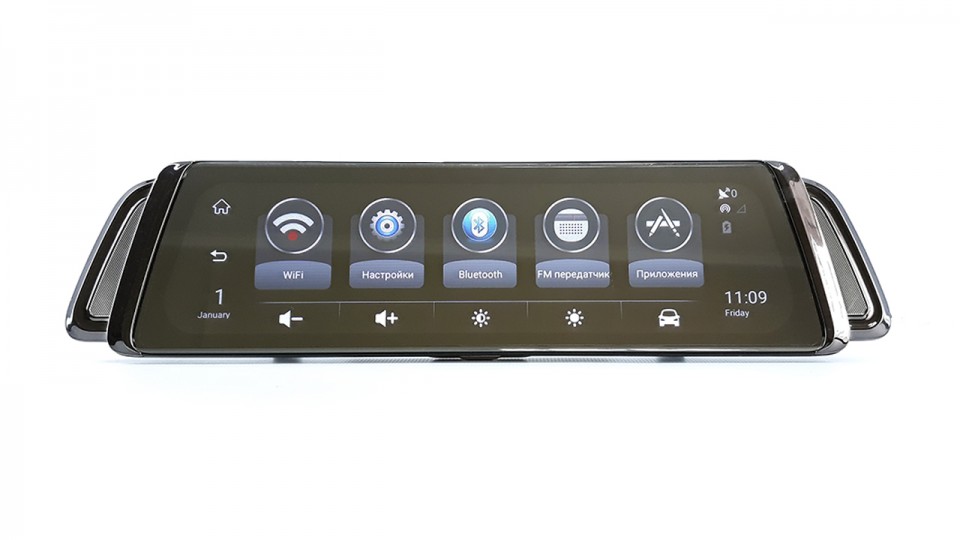 Сердцем зеркала является чипсет MediaTek MT6735, оснащенный четырехядерным, шестидесяти четырёх битным процессором Cortex-A53, максимальная тактовая частота ядра которого составляет 1.5ГГц. За графику отвечает чип начального уровня Mali-T720 MP2. Количество оперативной памяти составляет 1ГБ, количество встроенной памяти 16ГБ, количество встроенной памяти легко можно расширить путем установки двух флеш-карт емкостью до 128ГБ, каждая!!!При конфигурации SoC производительности системы вполне хватит для записи и вопросизведения видео с 1920х1080@25 к/сек для основной камеры и 1280х720@25 к/сек для камеры заднего вида.
