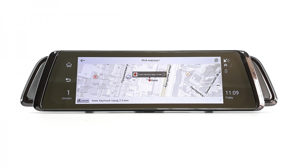 Зеркало со встроенным видеорегистратором, система ADAS (контроль полосы движения, расстояние до впереди идущего автомобиля), OS Android 5.1, IPS экран 10″, 2 камеры, 4G/GSM, Wi- Fi, Bluetooth, GPS навигатор с картами Украины.