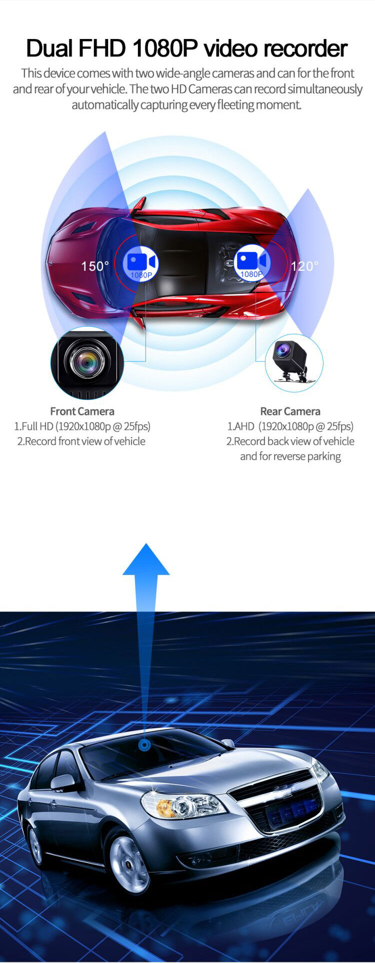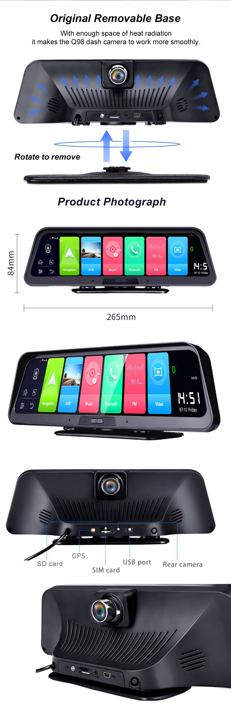 Phisung Q98 — Full HD 1080p видеорегистратор с двумя камерами, сенсорный IPS экран на 10 дюймов, поддерживает 4G (3G) интернет, Android 8.1 , встроенная память 32 ГБ, оперативная память 2ГБ, Wi-Fi, Bluetooth 4.0, GPS, FM трансмиттер, задняя камера с парковочной разметкой, система помощи на дороге — ADAS, CAR Assist.
