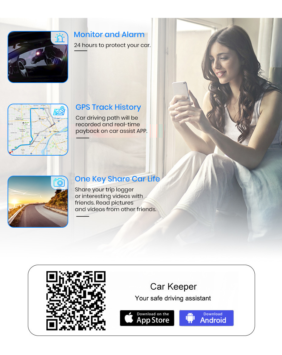 Отслеживание местонахождения и истории передвижений вашего автомобиля, удаленно фиксируйте, что происходит с вашим автомобилем из любой точки мира. Просматривайте изображения и видео с регистратора в режиме реального времени в приложении на вашем смартфоне.